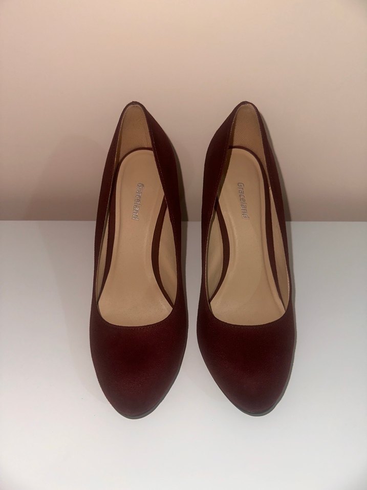 Bordo süet platform topuklu stiletto, minimalist ve çağdaş tasarıma sahip. Ofis için uygun, zahmetsiz şıklık sunar.