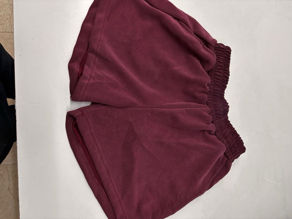 Bordo süet malzemeden, salaş kesim ve drapeli detaylara sahip mini şort, günlük sokak stili için rahat ve sade bir seçenek.