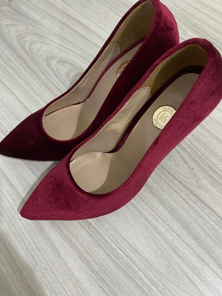 Bordo süet stiletto topuklu kadın ayakkabısı, klasik sivri burun ve parlak dokusuyla ofis için şık ve rahat bir tercih sunar. Hiç giyilmedi