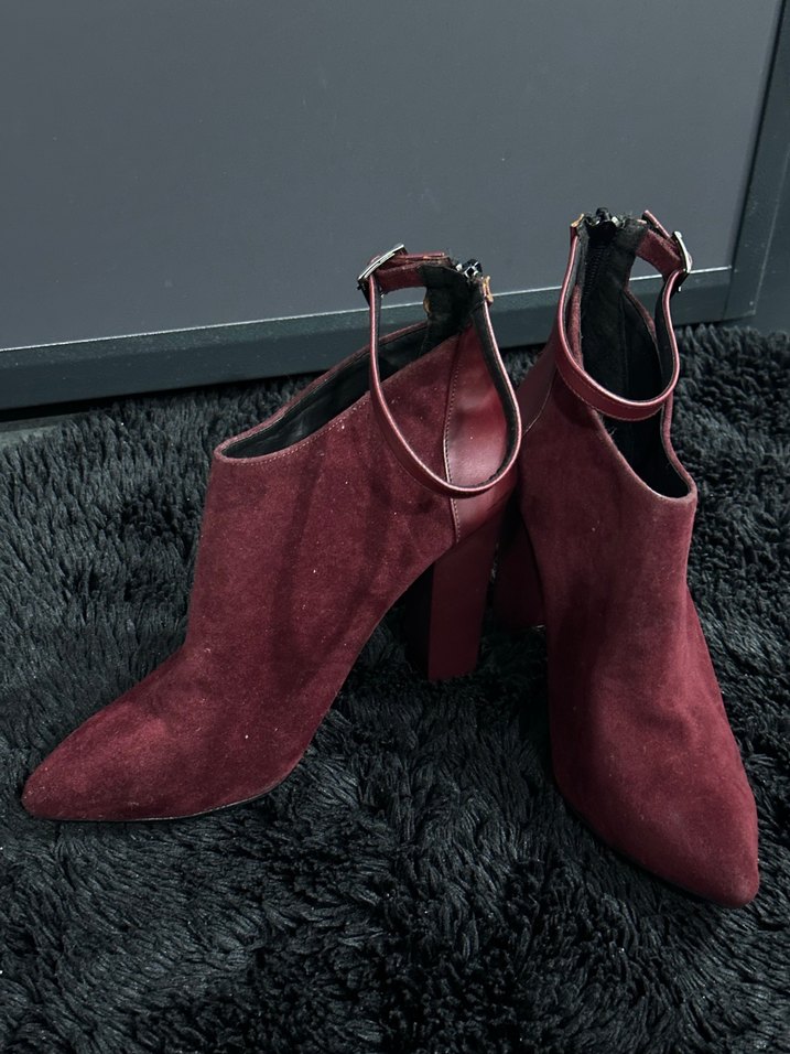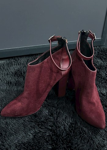 Bordo süet malzemeden, tokalı ve kalın topuklu kadın botları, romantik akşamlar için rahat ve modern bir tarz sunar. Ürün hiç kullanılmamıştır. Gayet iyi durumdadır