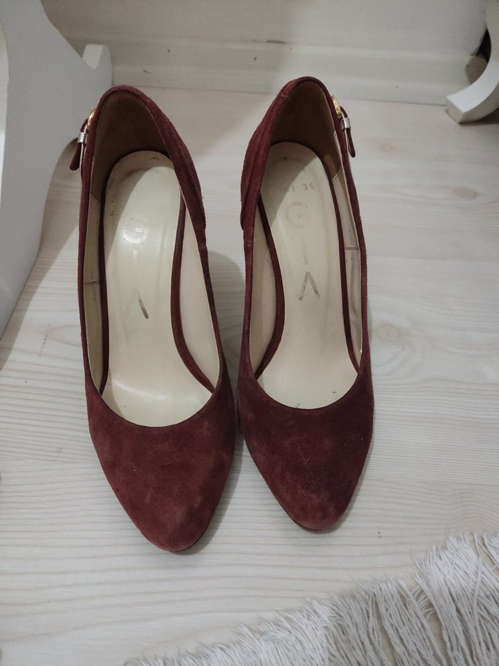 Bordo süet tokalı stiletto, parlak yüzeyli ve klasik minimalist tasarımlı, romantik akşamlar için uygundur.