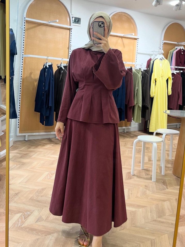 Bordo renkte, yüksek yakalı ve uzun kollu süet kumaştan yapılmış uzun elbise. Minimalist ve desensiz tasarımıyla ofis için uygun, rahat kesim ve şık görünüm sunar. 1/2 beden olarak satılır 1 beden 36/38 2 beden 40/42