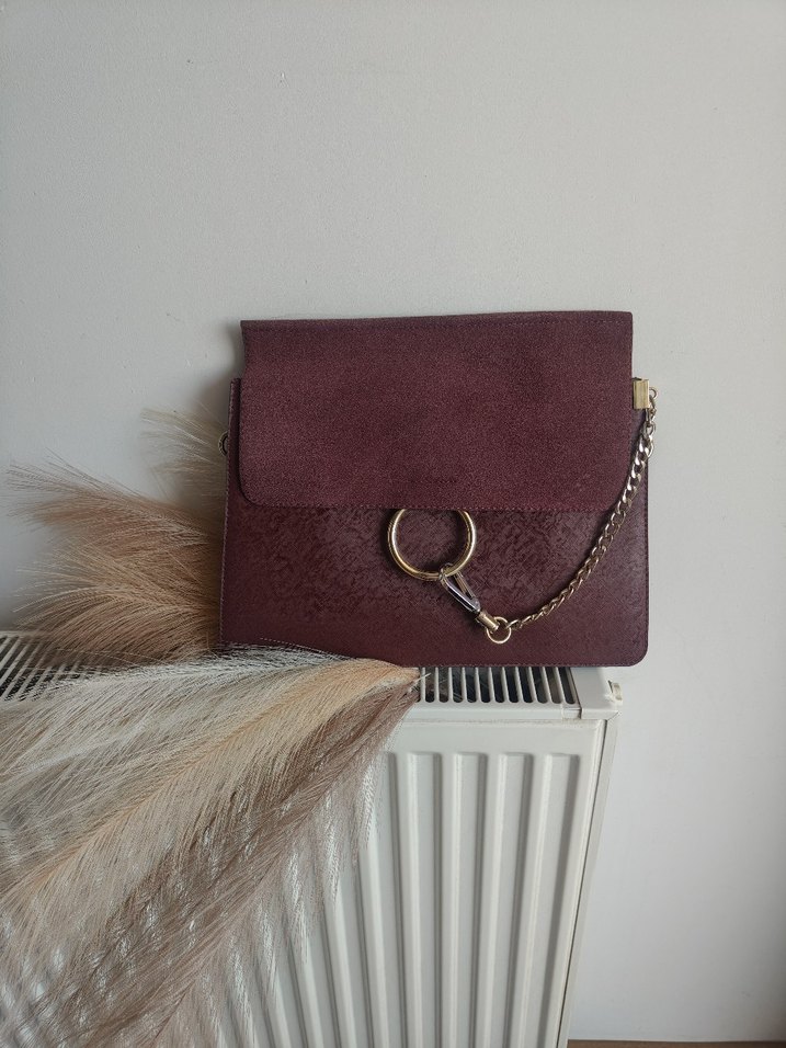 Bordo süet. Günlük kullanım için uygundur. uzun zinciri yoktur