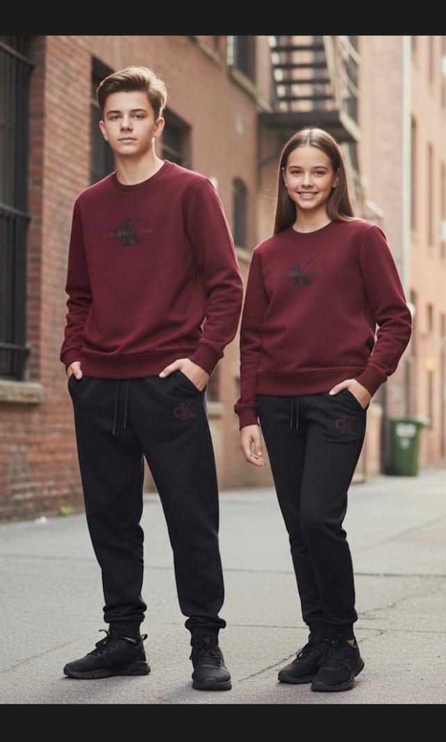 Bordo Sweatshirt ve Siyah Eşofman Altı Takım