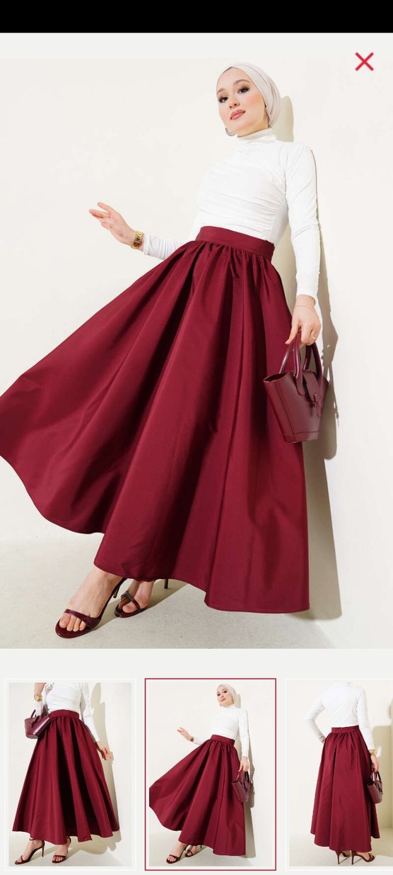 tafta kloş etek mükemmel bir kumaşı var tok duruyor yürüyünce bacak arasına girmiyor dümdüz duruyor maalesef kilo aldığım için satıyorum sayfamda siyah ve krem rengide var 2 etek 1500 fiyatta hiç bir şekilde indirim yapmıyorum benden kesinti olunca elimde bir şey kalmıyor fiyatının çok çok altında satışta zaten .