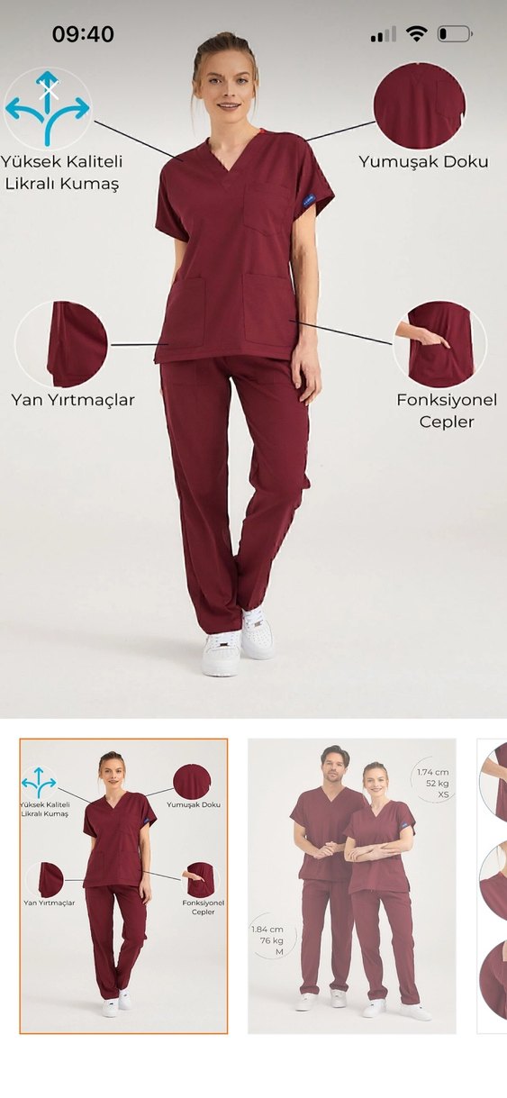 Bordo takım scrubs
