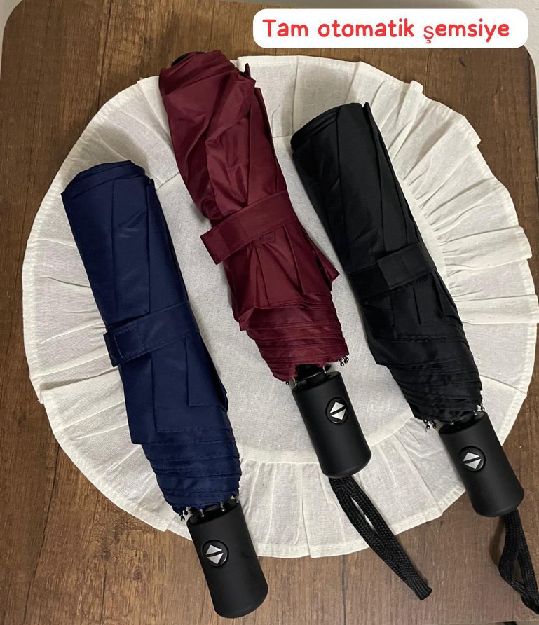 Bordo renkli, tam otomatik açılır kapanır kadın şemsiye. Velcro bantlı, kompakt tasarımıyla sokak ve athleisure tarzına uygundur. ☂️
