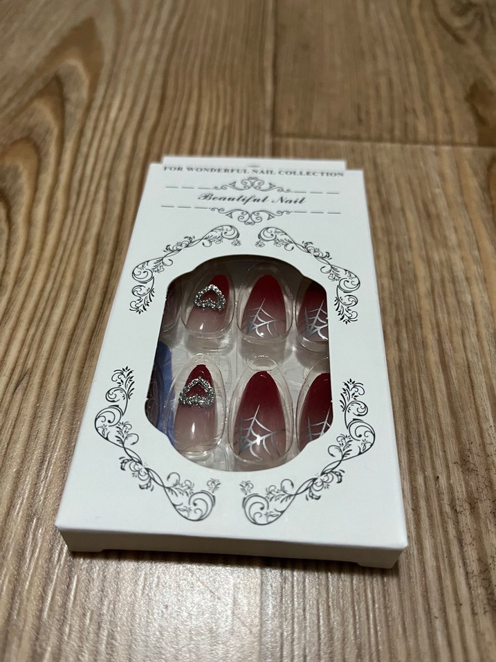 Bordo ve şeffaf tırnak süsleri, beyaz desenler ve taş detaylarıyla zarif bir görünüm sağlar. 24 adet tırnak 24 adet yapıştırıcı bir adet törpü
