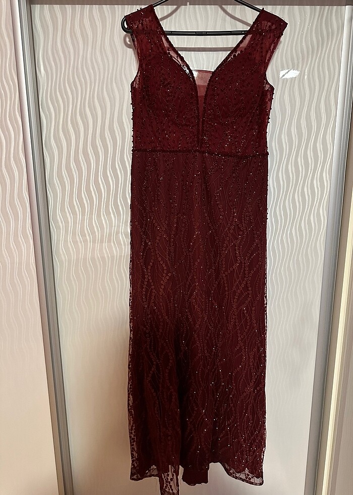 Bordo Taşlı Abiye