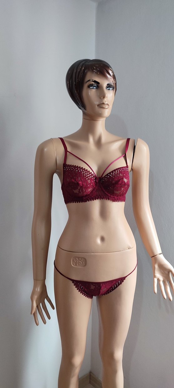 Bordo renkte, ince askılı ve dantel detaylı minimal ve modern tasarıma sahip sütyen takımı. Koyu renk şıklık katıyor.