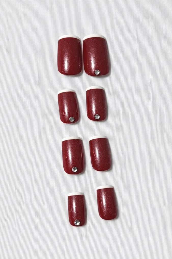 Bordo Taşlı Takma Tırnak (8 Adet)