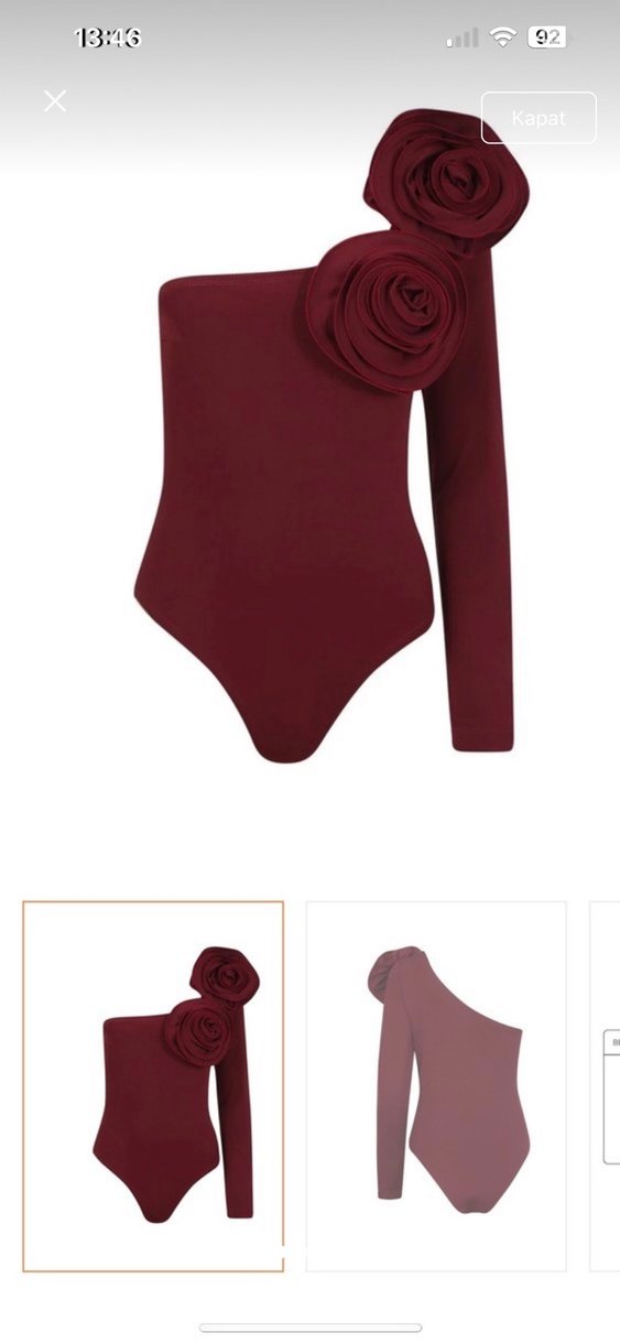 Bordo renkte, tek kollu ve drapeli çiçek detaylı, modern ve minimal tarzda kadın monokini, parti için uygun.