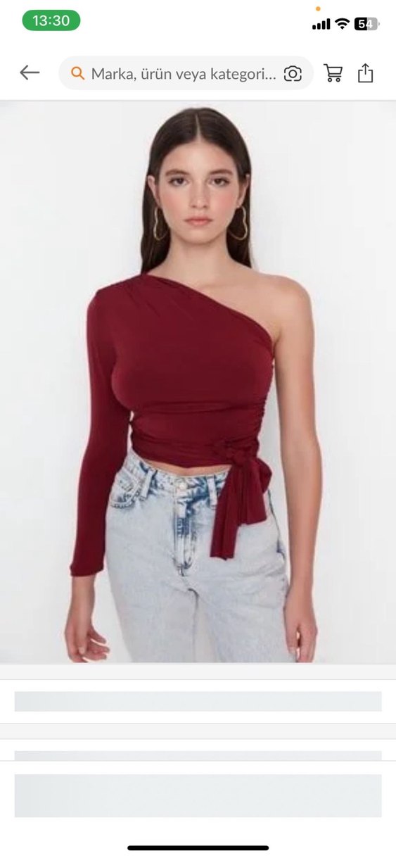 Bordo Tek Omuzlu Uzun Kollu Kısa Bluz