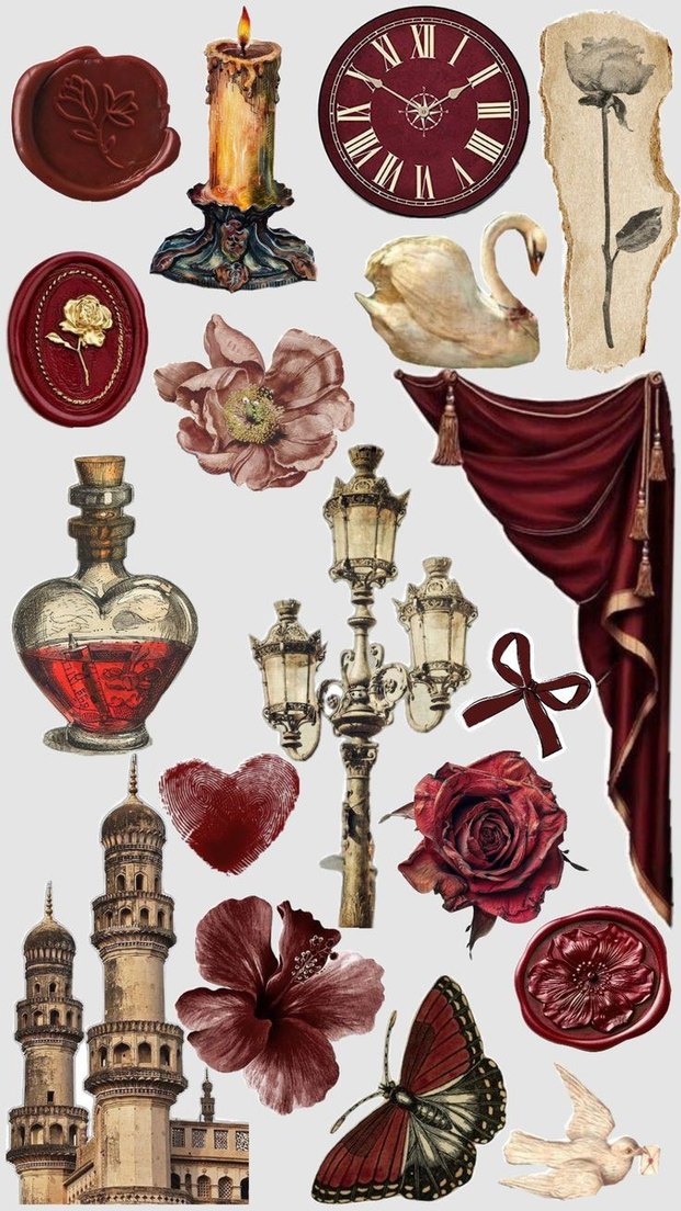 Koyu bordo renkli, çiçek ve vintage desenli dekoratif lamba ve aksesuar stickerlarla, sokak lambası ve gül tasarımlarıyla. ️