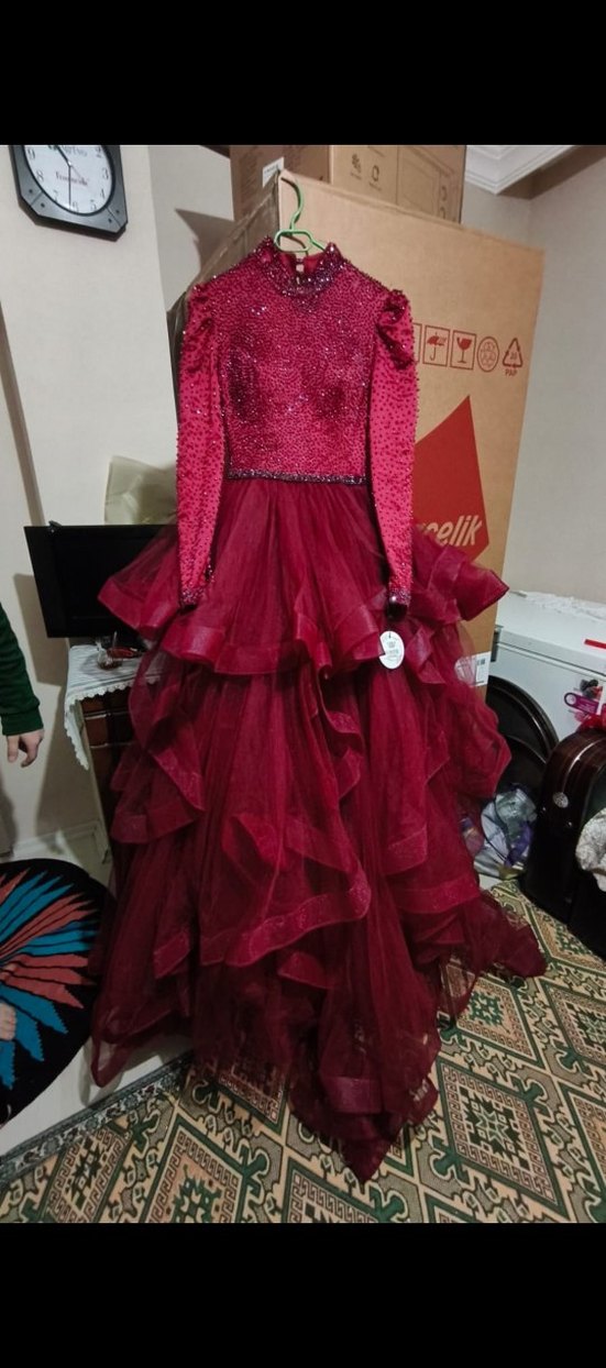Bordo renkli, yüksek yakalı ve uzun kollu. 34-36 beden uyumlu, boncuklarda bir iki sökülme var fotoğraflarda eklendi. Alındı giyilmedi. Etiketi duruyor. Tarlatanı yok ✨ppv