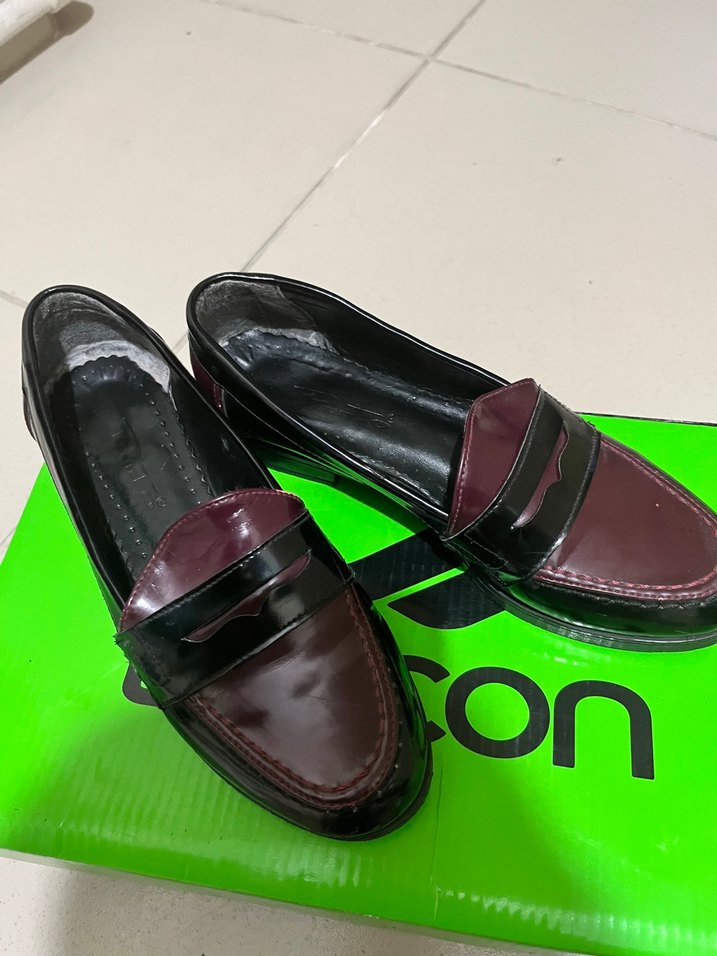 Dayanıklı kauçuk malzemeden yapılmış, bordo renkte tokalı erkek çocuk loafer ayakkabılar. Desensiz ve gotik stile uygun.
