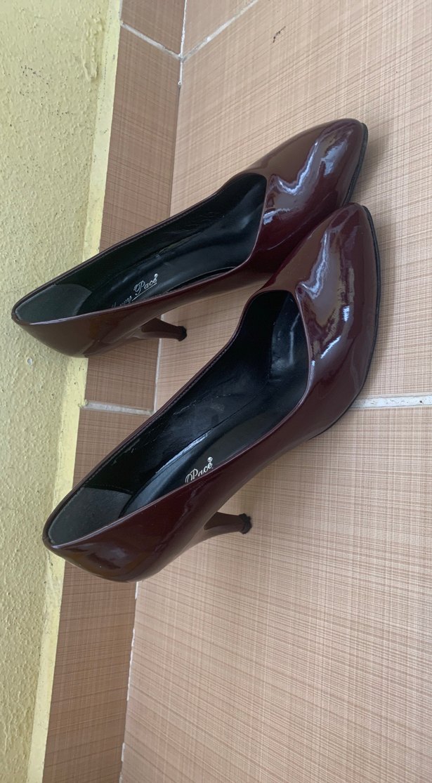 7 cm topuk Bordo renkte, tokalı ve lastik malzemeden üretilmiş stiletto topuklu kadın ayakkabısı, klasik ve ofis kullanımı için uygundur.