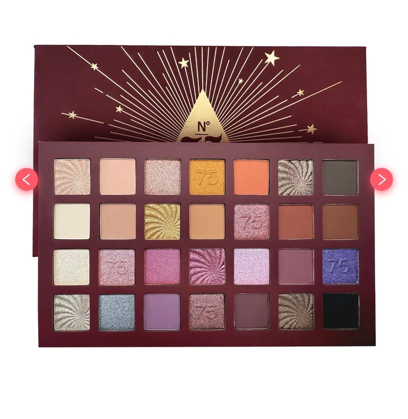 Bordo tonlarında, parlak ve mat dokularda çeşitli canlı far renkleri içeren far paleti.