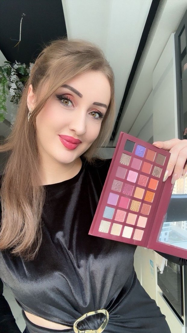 Bordo tonlarında canlı ve koyu renklerden oluşan far paleti, çeşitli göz makyajı seçenekleri sunar.