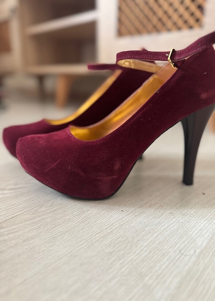 Bordo topuklu kına ayakkabısı
