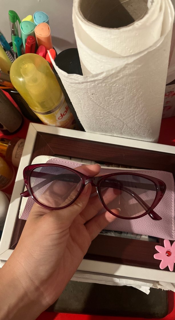 Koyu bordo transparan kedi gözü çerçeveli kadın güneş gözlüğü
