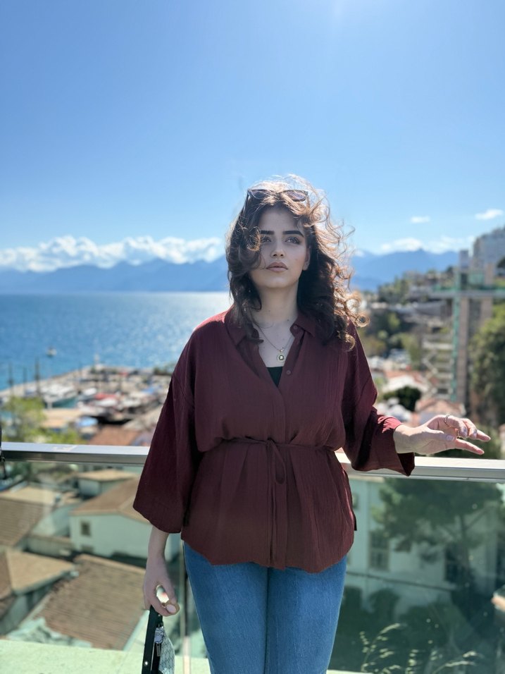 Bordo Transparan Kadın Gömlek