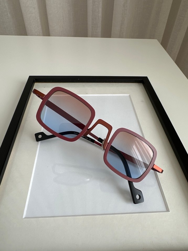 Koyu bordo renkli, transparan camlı, çağdaş minimalist tasarıma sahip kadın güneş gözlüğü. Moda öncülerine uygun avant-garde stil sunar.