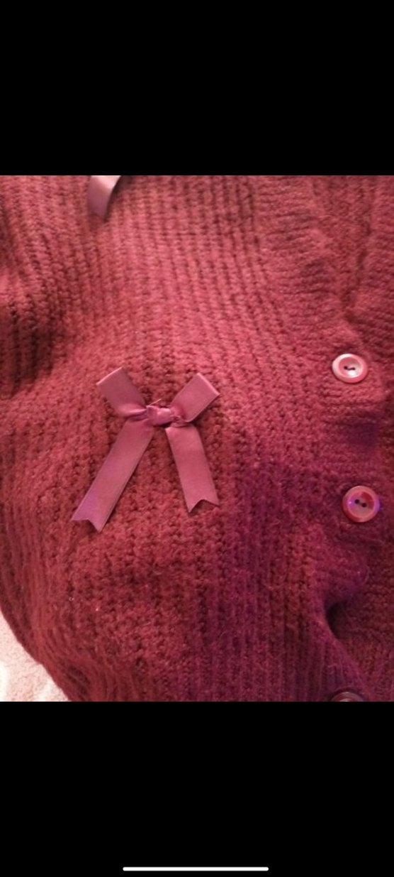 Fitted kesim bordo triko hamile hırkası, yakalı ve düğmeli. Parlak dokusu ve küçük kurdele detayıyla günlük kullanıma uygun rahat bir parça.