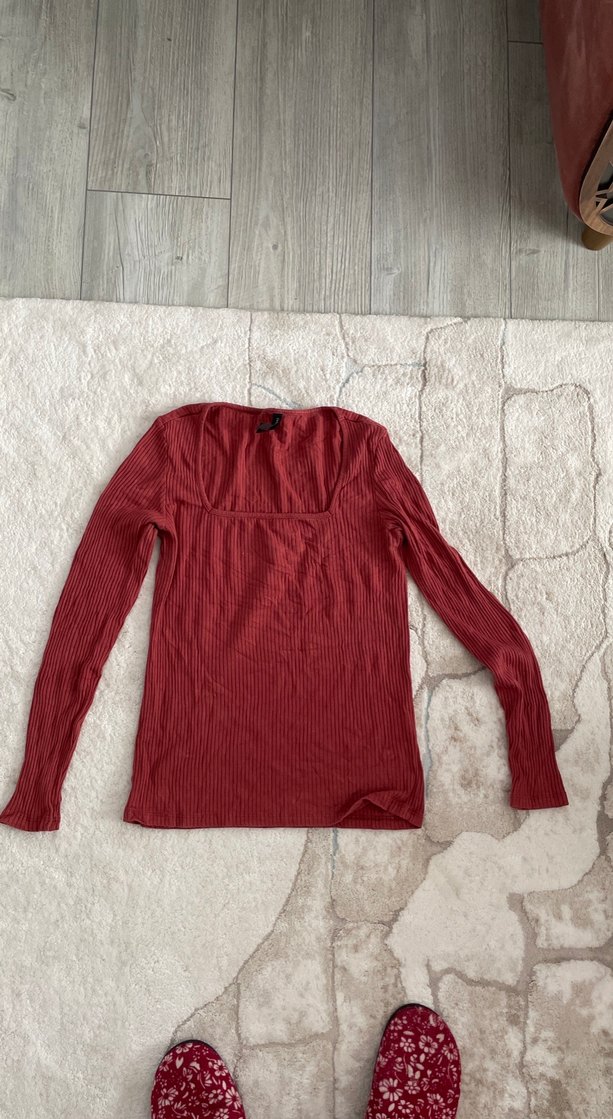Bordo renkli, triko dokulu, uzun kollu ve tek renk kadın bluz. V yaka ve vücuda oturan kesimiyle günlük sokak stiline uygundur. Midi boydadır.