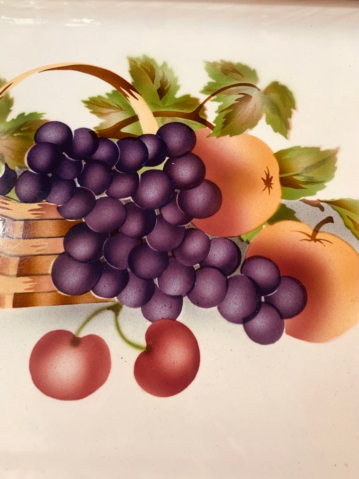 Bordo Üzüm ve Meyve Desenli taş tepsi
