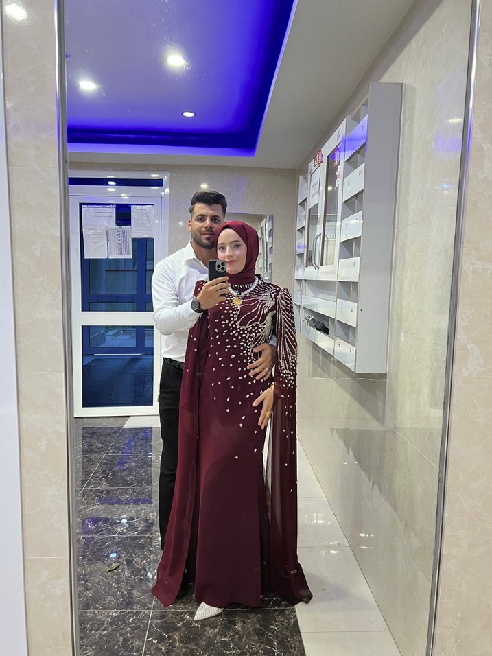 Bordo renkli, etnik desenli, yüksek yakalı ve uzun kollu, drapeli, regular fit uzun abiye elbisedir. Düğünler için uygun, sade ve modest bir modeldir.
