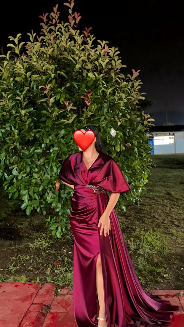 Bordo Uzun Abiye Elbise