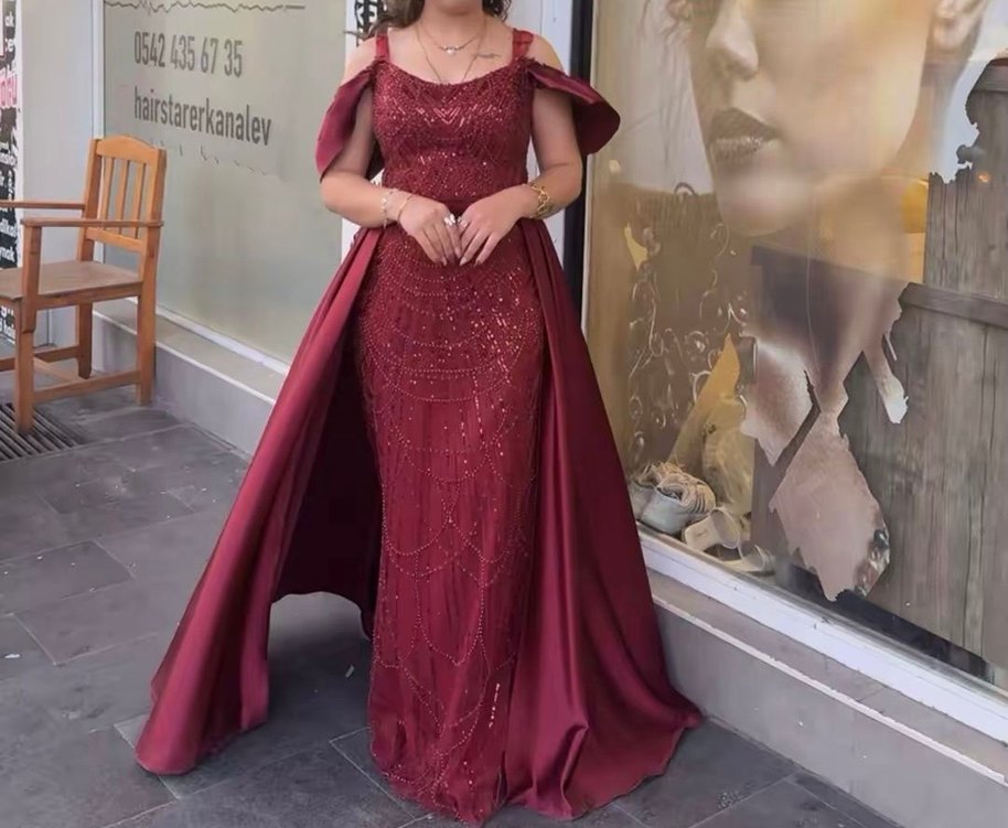 Ben aldıgımda straplez bir abıyeydı kollarını yaptırdım askı da yaptırdım gıydıgımde bir defa gıydım tertemız abiyedır soktum gerı yaptıklarmı şuan en sondakı resım gıbıdır şık bir abiyedır bede 42 yazıyor ama 38 bedenım ben bana tam oturdu