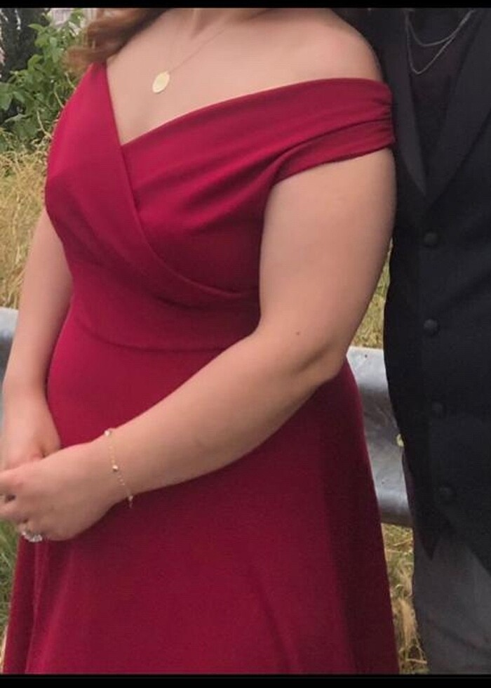 Bordo renk sadece 1 kere giyildi hiçbir sıkıntısı yok rahat bir elbise 48 beden ama 44-48 beden herkese olur Bel - 45 cm İki kol arası 50 cm Esnek bir kumaş boyum 1.72 tam ayak ucunda boyu