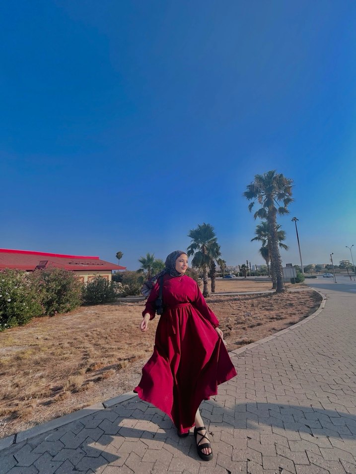 Bordo renkli, uzun boy, salaş kesim bohem elbise.