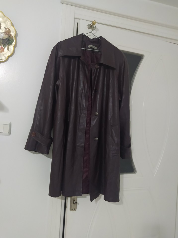 mor renkli uzun deri kadın kaban düğmeli ön ve keskin yaka detayına sahiptir. Uzun kollu, regular fit ve koyu gotik Paris tarzını yansıtır. Günlük kullanıma uygundur. aldığda .kemer yer var.ben kemersiz aldım.alana hayırlı olsun pazarlık payı vardır