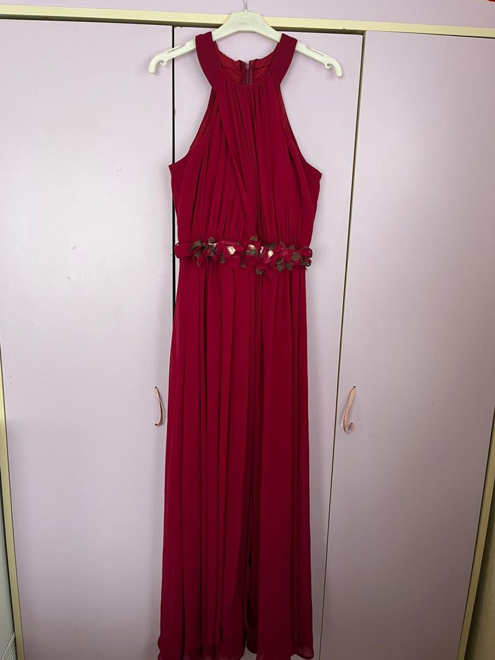 Drapeli ve işlemeli detaylara sahip, askısız ve kolsuz bordo uzun abiye elbise, düğünler için klasik ve modern şıklık sunar.