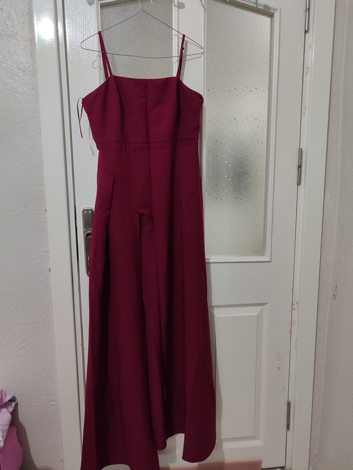 Bordo Uzun Drapeli Askılı Elbise