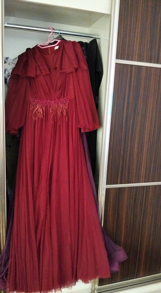 Bordo Uzun Drapeli Kadın Abiye