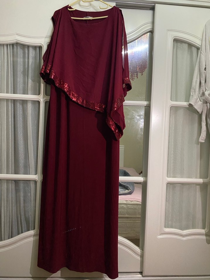 Bordo renkli, uzun ve salaş kesimli kadın abiye elbise, parlak drapeli detaylara sahiptir. Askısız ve kolsuz tasarımıyla özel davetlere uygundur.sadece bır kez gıyıldı nışanda ben 2500 e aldım elımden cıksın dıye satıyorum