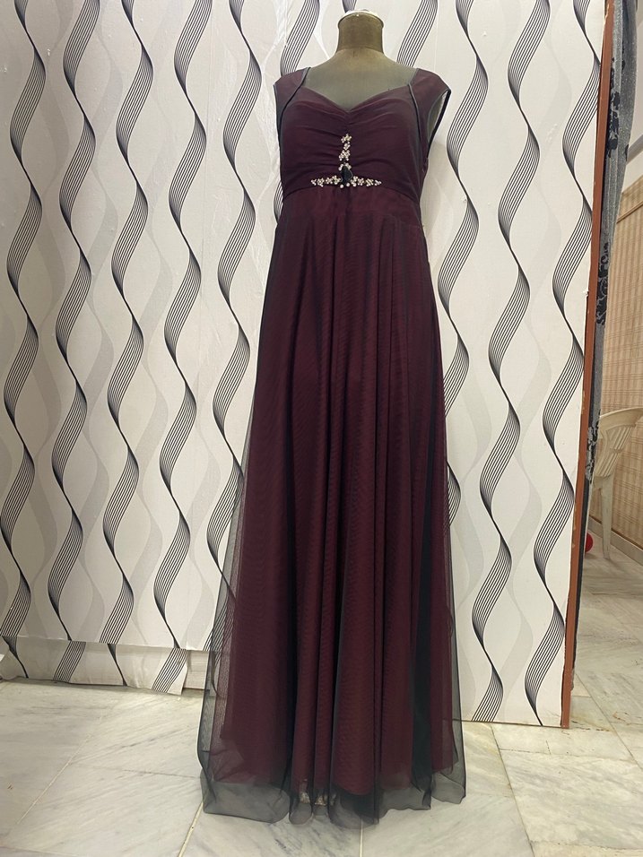 Bordo Uzun Drapeli Kadın Abiye Elbise