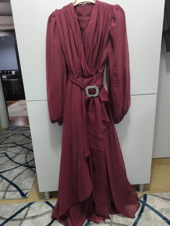 Bir kere giyilmiştir.Trendyol görselini de ekledim elbisenin şekli net belli olsun diye rengi ilk fotoğraflardaki gibidir deformesi yoktur