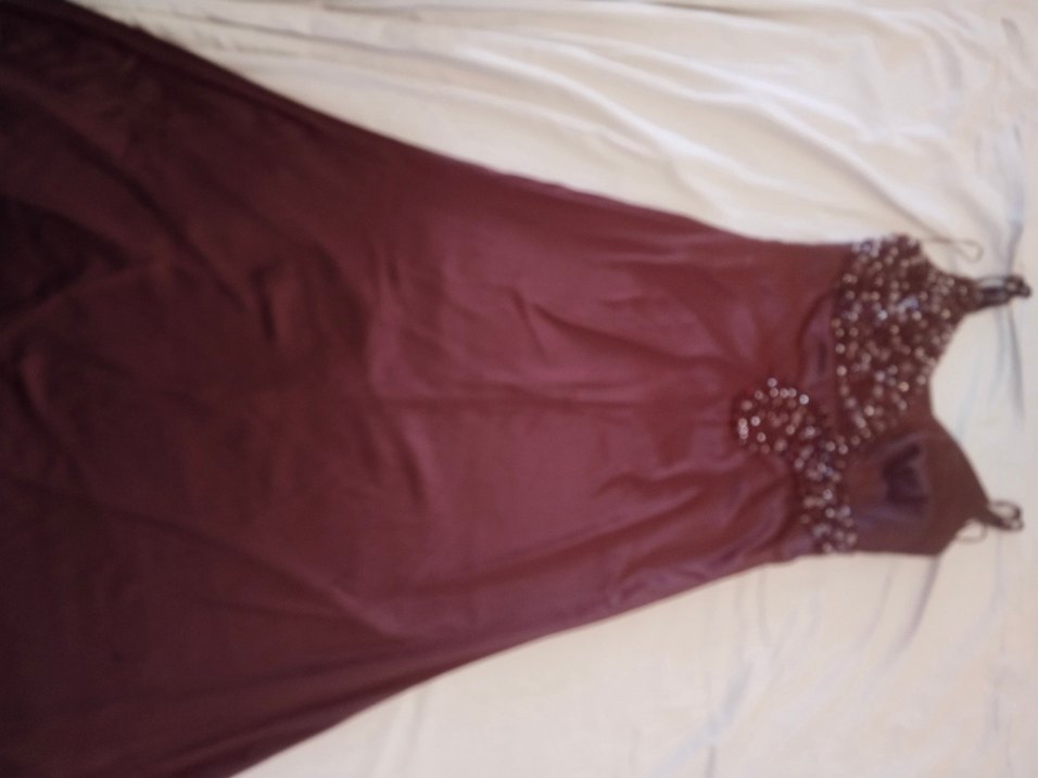 Bordo renkli, straplez yakalı ve drapeli detaylı uzun kadın elbisesi. Kolsuz, vücuda oturan kesimiyle düğünler için sade ve bohem tarzda uygun.boncuk detaylı