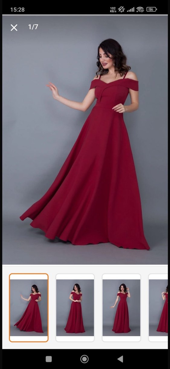 Bordo uzun abiye elbise, drapeli tasarımı, V yakası ve askılı kolları ile dikkat çeker. Düz kesimiyle düğün ve özel günler için uygundur.