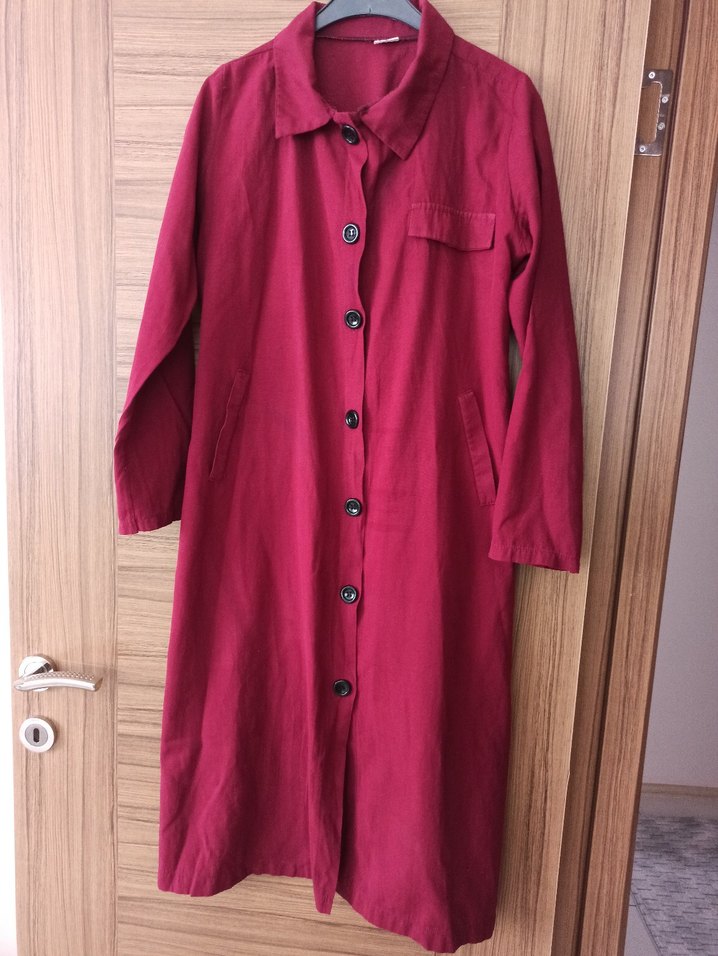 Bordo renkli uzun keten tunik düğmeli ve kesimli yaka detaylarına sahiptir. Uzun kollu ve bol kesim, gündelik rahat kullanım için uygundur. Minimalist ve desensiz tasarımdadır.
