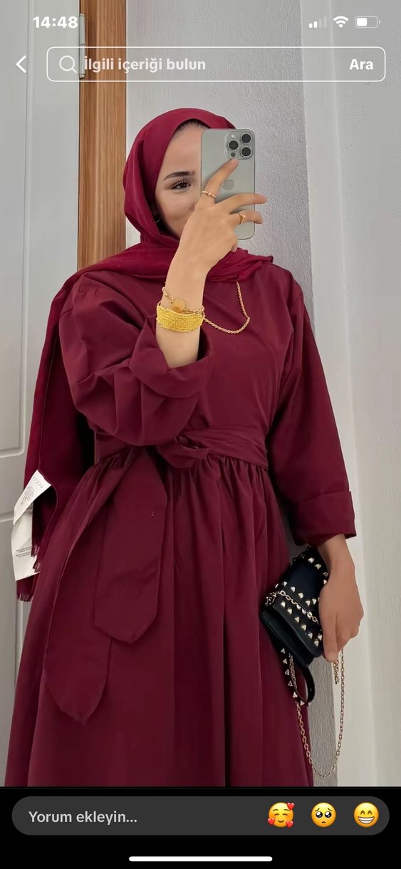 Bordo renkli, uzun ve salaş etekli şık takım hiç giyilmedi etiketli