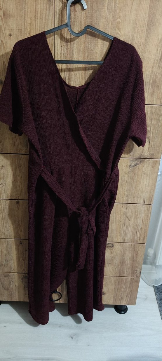 Bordo renkli, uzun kesim, bol ve askılı kollu kadın bol paça midi boy tulum Rahat ve bohem tarzda, desensiz tasarıma sahip. ️