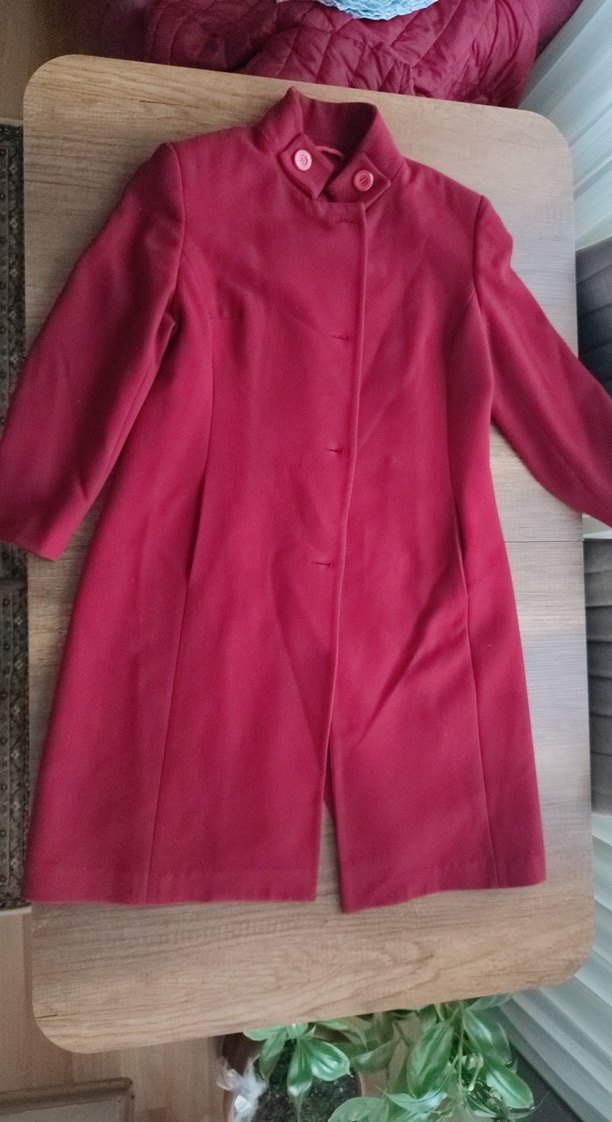 Bordo renkte, uzun kesim kadın kaban. Düğmeli, yakası kesik ve uzun kolludur. Rahat kesimiyle yumuşak ve sıcak kumaştan üretilmiştir.