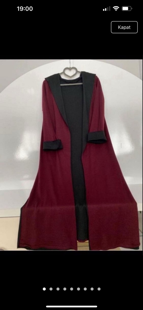 Bordo Uzun Kadın Kaban Siyah Yaka Detaylı
