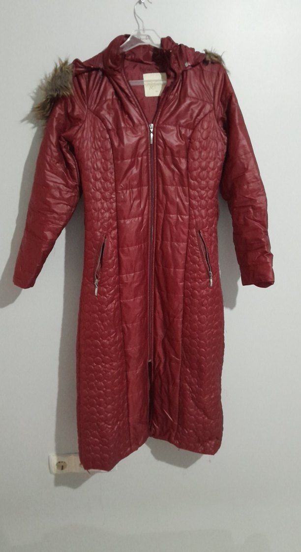 Bordo renkli, fermuarlı, uzun kesim kadın kışlık mont. Sentetik kumaştan, kesimi vücuda oturur, notched yaka ve uzun kolludur. Günlük kullanıma uygundur. ❄️boy 113cm iki kol arasi48cm